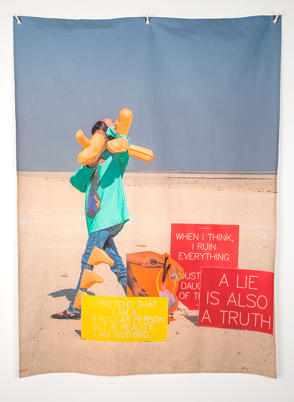 157_lum-desranleaua-lie2017 I really / I want / Time for / A lie – A lie, 2016. Inkjet on canvas, grommets, powder coated steel; 52 x 39.5 inches.