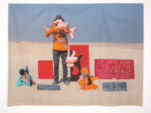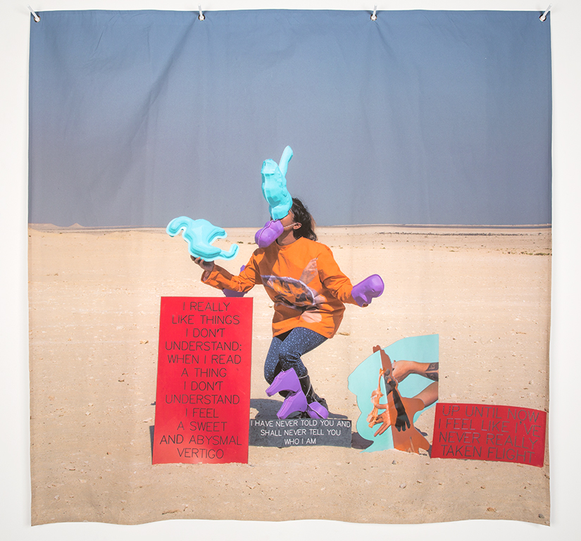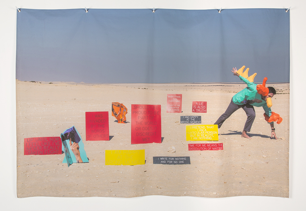 157_lum-desranleaui-want2017 I really / I want / Time for / A lie – I want, 2016. Inkjet on canvas, grommets, powder coated steel; 52 x 69 inches.